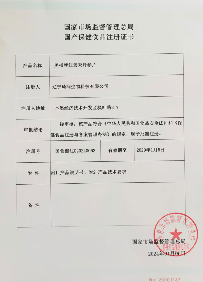 国产保健食品注册证书