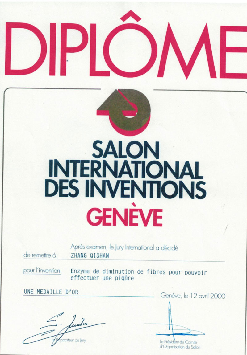 2000年荣获日内瓦国际发明博览会金奖